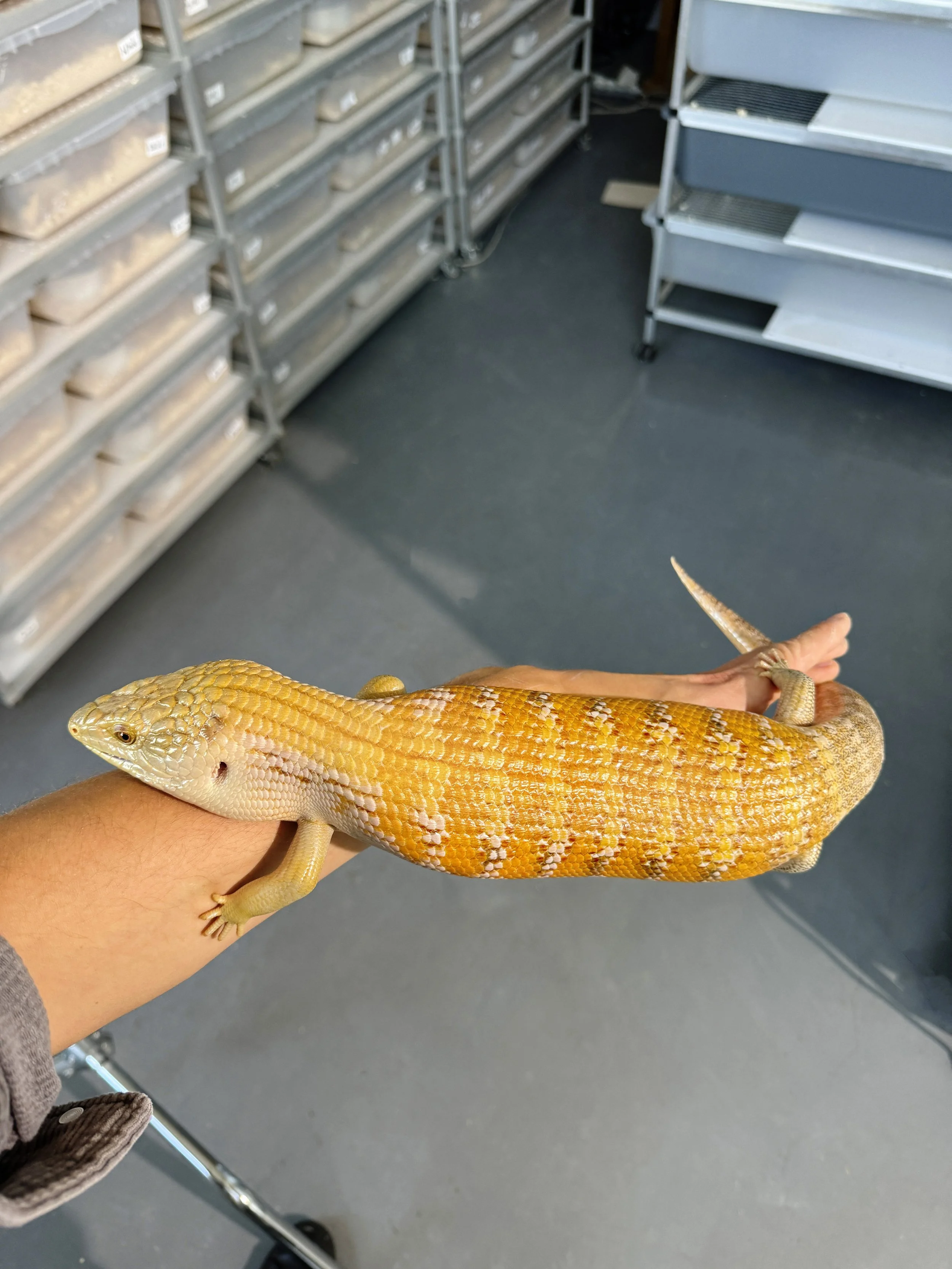 Blue Tongue, which transforms into Pink Tongue, is a rare and challenging morph to breed. This is the most important project in our breeding program. We plan to combine lines from America to create Sunset/Sunrise albino. It will be a long process, but we hope to succeed in a few years. Hets for hyper can further enhance the color, not to mention Lava.